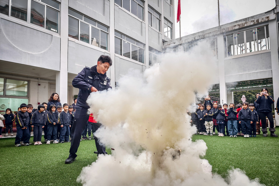 在普陀区中福会幼儿园门前,石泉路派出所民警与交通协管员、社区志愿者组成护校小分队,分工协作开展交通疏导:一边指挥机动车减速慢行、礼让行人,引导非机动车有序停放;一边牵手学生安全通过斑马线,为低年级学生开启“护学通道”。