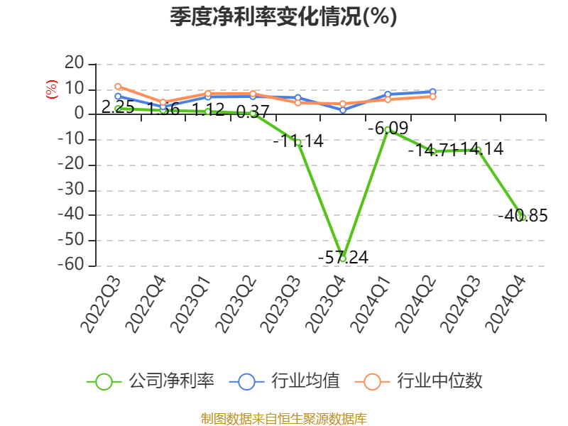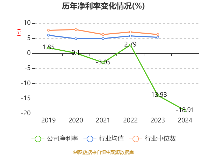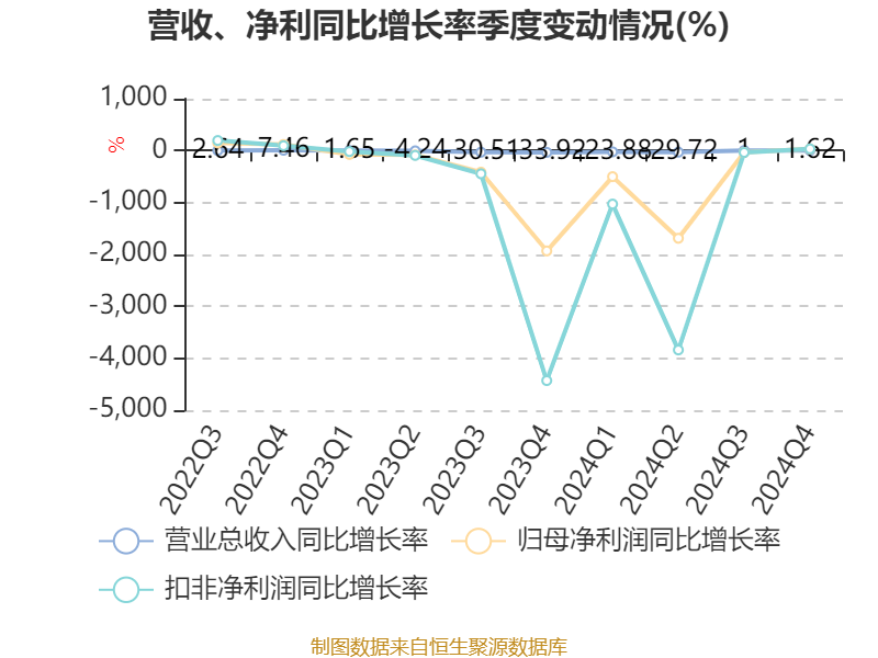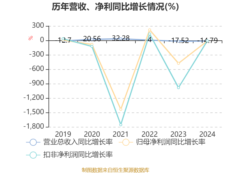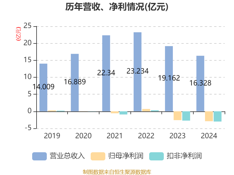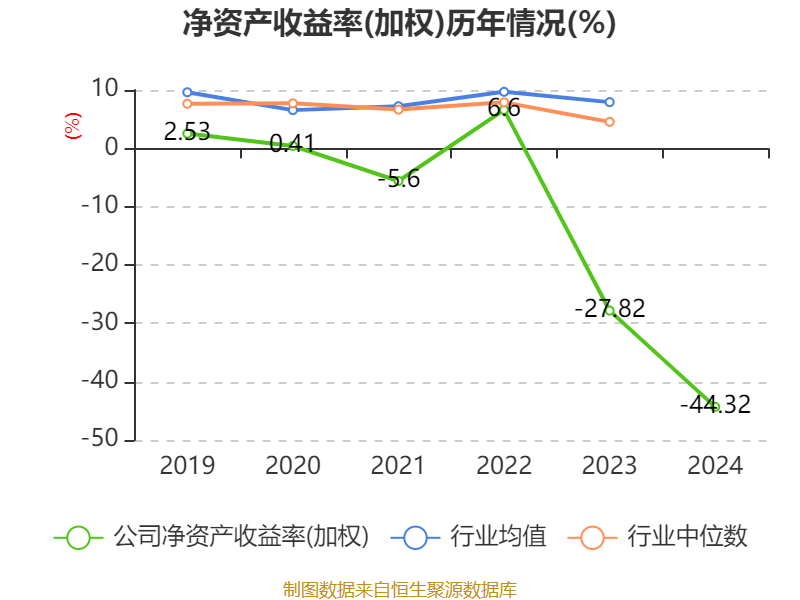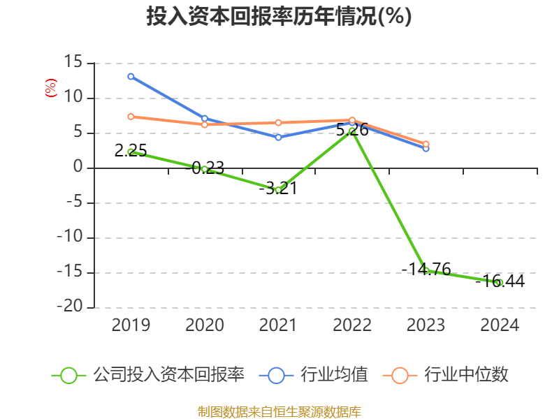 数据显示,2024年公司加权平均净资产收益率为-44.32%,较上年同期下降16.5个百分点。公司2024年投入资本回报率为-16.44%,较上年同期下降1.68个百分点。