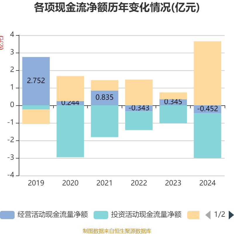 截至2024年,公司经营活动现金流净额为-4518.98万元天猫配资端,同比减少7971.09万元;筹资活动现金流净额3.65亿元,同比增加3.26亿元;投资活动现金流净额-2.55亿元,上年同期为-1.03亿元。