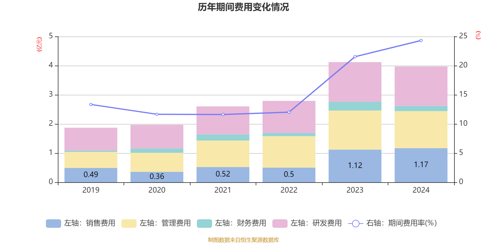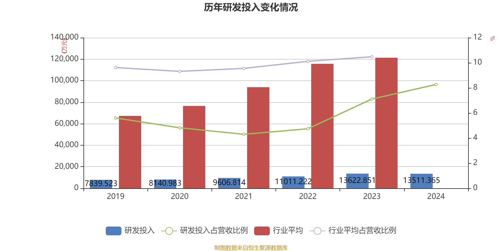 2024年全年,公司研发投入金额为1.35亿元,同比下降0.82%;研发投入占营业收入比例为8.27%,相比上年同期上升1.16个百分点。此外,公司全年研发投入资本化率为0%。